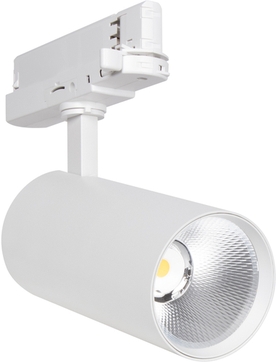 Produkteigenschaften: Kompakter Stromschienen-Strahler mit in der Schiene integriertem Vorschaltgerät. Drehwinkel: 350°, Neigungswinkel: 90°. Verfügbar mit Farbtemperatur 3000 K oder 4000 K. Farbwiedergabeindex Ra 90. Anfängliche Farbkonsistenz: ? 3 SDCM (Schwellwerteinheit). Ausgestattet mit Reflektor mit 24 ° Ausstrahlwinkel. Gehäuse aus langlebigem Alu-Druckguss. Verfügbar in Mattweiß (ähnlich RAL9003), Mattschwarz (ähnlich RAL9005). Leuchten-Lichtausbeute: bis zu 120 lm/W