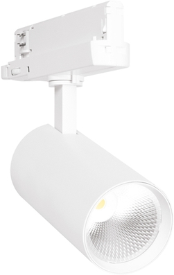 Produkteigenschaften: Kompakter Stromschienen-Strahler mit in der Schiene integriertem Vorschaltgerät. Drehwinkel: 350°, Neigungswinkel: 90°. Leuchten-Lichtausbeute: bis zu 95 lm/W. Farbwiedergabeindex Ra 90. Ausgestattet mit Reflektor mit 24 ° Ausstrahlwinkel. Gehäuse aus langlebigem Alu-Druckguss. Verfügbar in Mattweiß (ähnlich RAL9003), Mattschwarz (ähnlich RAL9005)